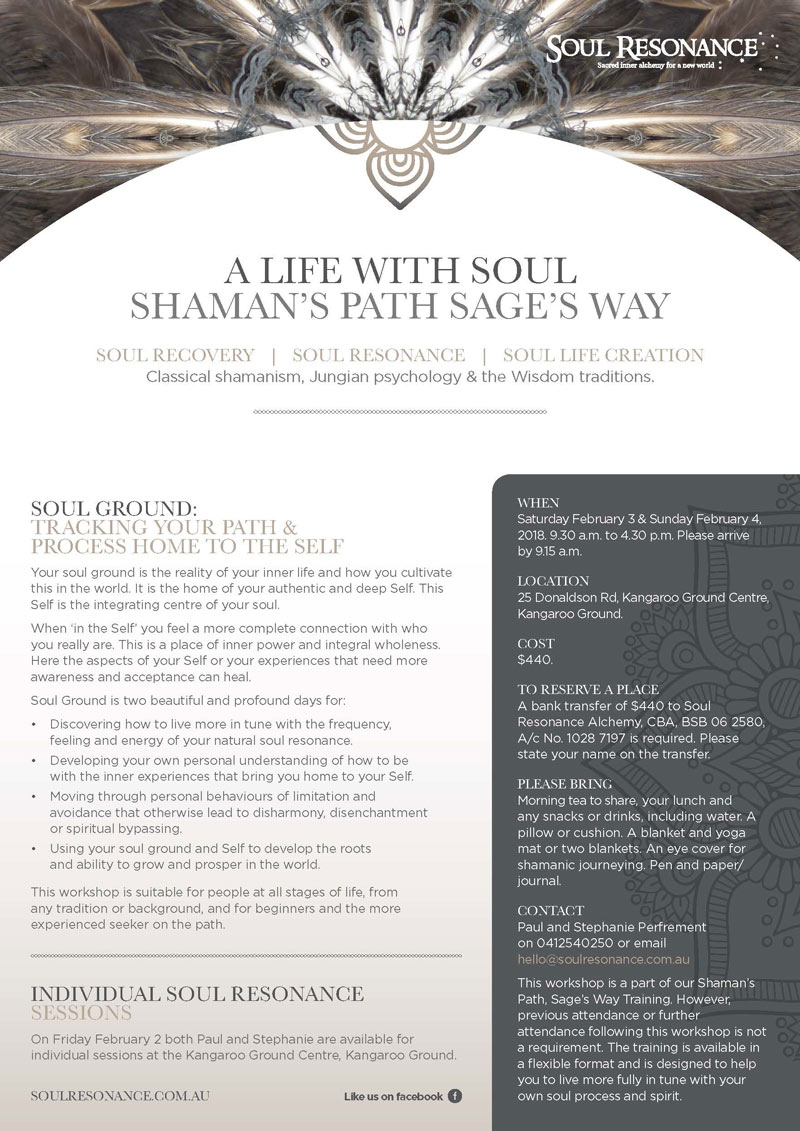 Events HOME SOUL RESONANCE Understanding Soul Resonance Who is Soul Resonance for? Sessions and Retreats Soul Centred Learning Soul Resonance for Business Events ABOUT US CONTACT HOME Understanding Soul Resonance Who is Soul Resonance for? Sessions and Retreats Soul Centred Learning Soul Resonance for Business Events ABOUT US CONTACT Soul Ground: Tracking your path & process Home to the Self. Melbourne Workshop, February 3-4, 2018 Download PDF Flyer Contact Us Follow us on Facebook and Instagram to stay updated with this event and more Go to Facebook Go to Instagram